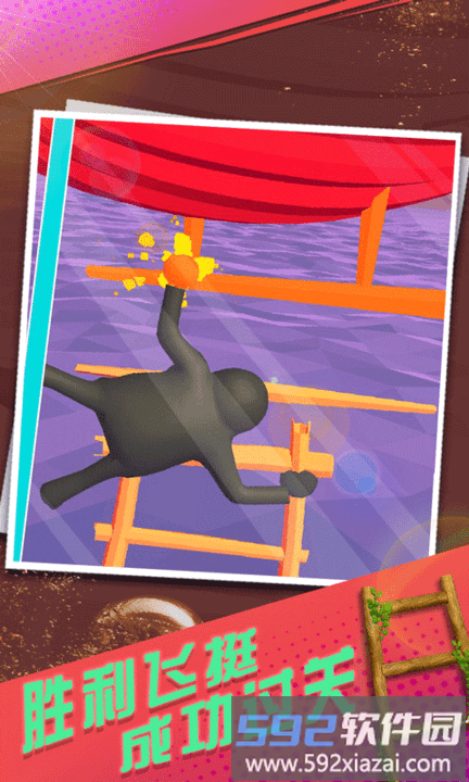3.关键诀窍在于观察橙色标记与木板重合的瞬间进行点击。游戏加入了真实的物理摆动效果,当单臂悬挂时身体会产生摇晃