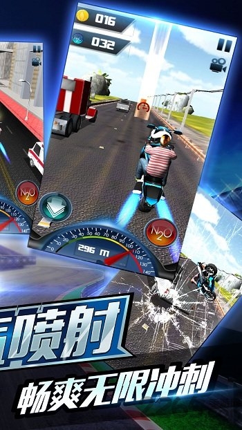 1、利用手机重力感应或触屏按键调整车身倾斜,实现流畅过弯与甩尾。