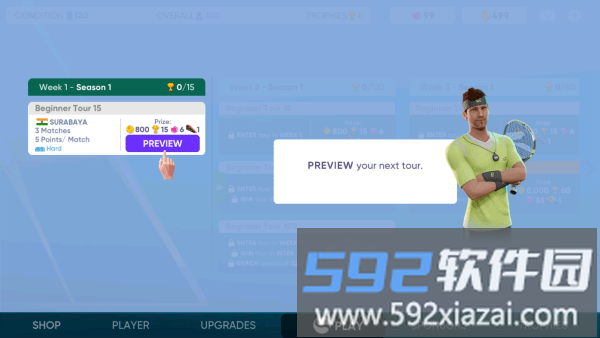强化体能储备、正手攻势、反手防御、移动速度、发球威力和网前截击。在制定比赛策略时充分展现你的技术特点,用实力征服新赛季的所有赛事。