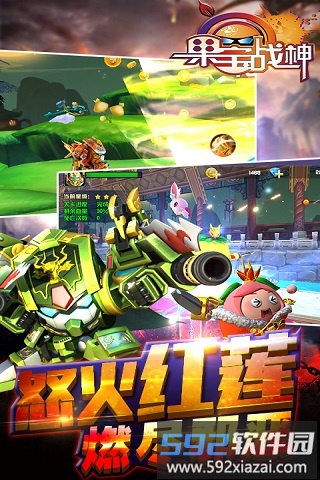 3.橙留香、陆小果、菠萝吹雪三大角色完成战甲合体后战力飙升。每位角色都完美复刻了原作动画的经典战斗姿态,果帝龙刀、菠萝多蜜剑、虎啸山林炮等专属武器显著增强角色能力,更可解锁惊艳的终极必杀技,轻触屏幕即刻爆发惊人威力,击溃邪恶势力易如反掌!
