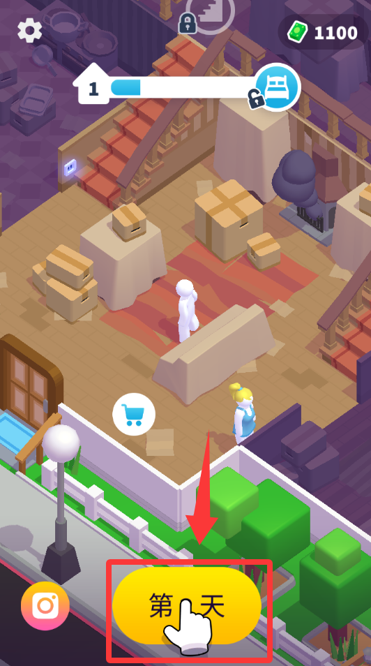 2、找到界面中红色标记的"次日"按钮,点击即可开启新工作日。