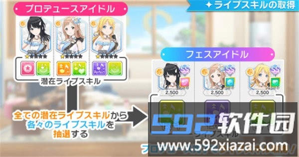 每位偶像的演出技能将从其专属技能库中随机抽取。
