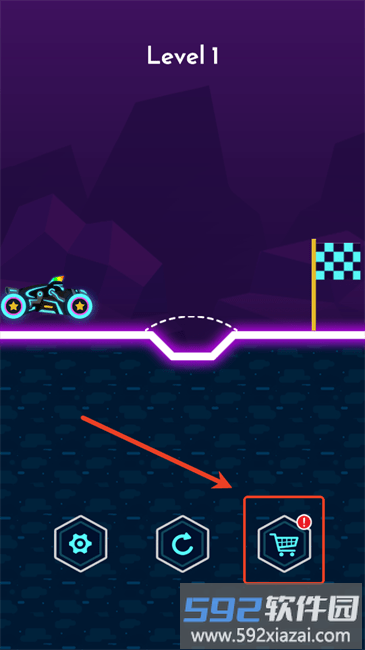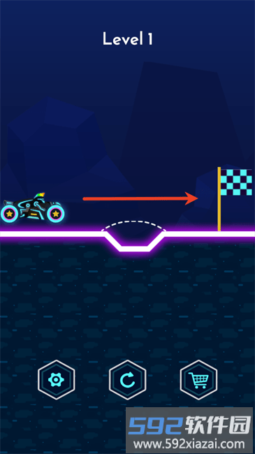 1.按照指引画出合适的桥梁形状,确保摩托车能够平稳驶向对面的终点位置