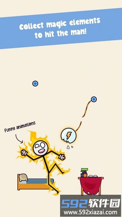 1.核心玩法是割断绳子搜集元素,比如火焰、寒冰、闪电球,最后安全送达刺客手中