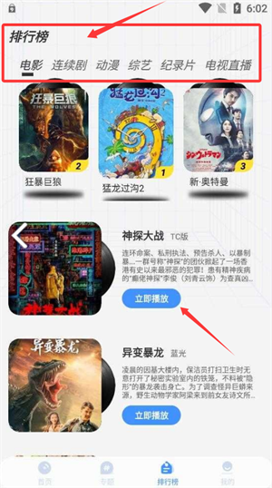 4、点开排行榜,电影和剧集的热度榜单一目了然,看到喜欢的直接播放。