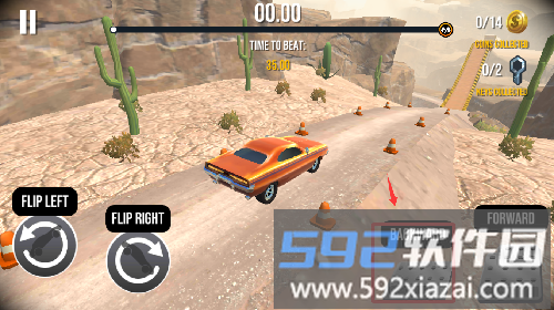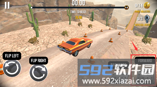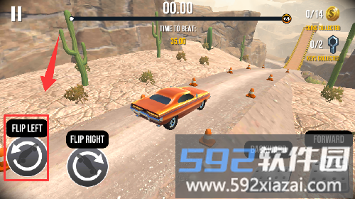 1、游戏界面左下角的红色按钮用于控制车辆向左翻转。