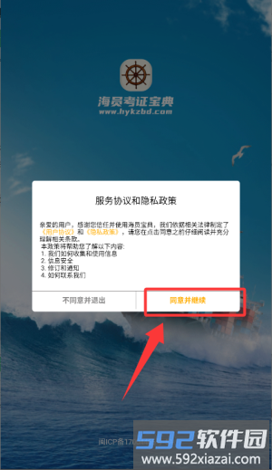 1、仔细阅读用户协议与隐私条款,确认无误后点击“同意并继续”按钮,进入应用主界面。