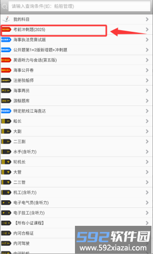 3、在题库列表中选中“考前冲刺题2025”分类,进入对应习题页面。