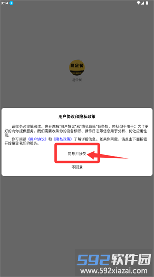 1、打开软件后先看看用户协议和隐私条款,确认没问题就点同意进入。