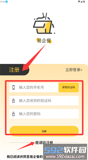 2、到注册页面输入手机号,收个验证码,再想个好记的密码,账号就注册好了。