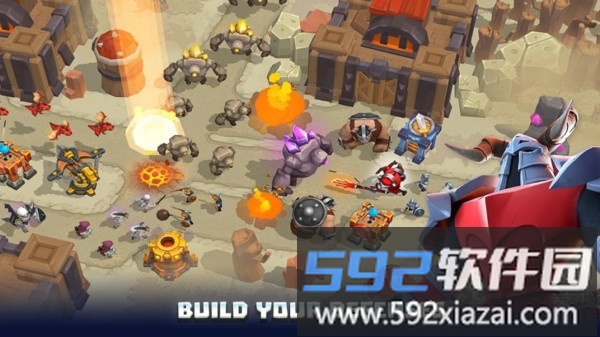 4、玩法组合多变,不仅依赖机关塔布局,更有实力强悍的英雄协同作战,共同对抗入侵者。