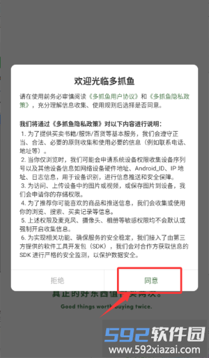 1、阅读完用户条款与隐私政策后,点击"同意"按钮,就能进入应用首页。